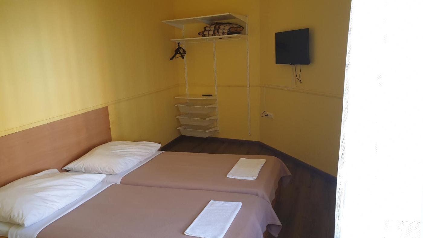 Twin Room with Shared Bathroom. This simply furnished room has cable TV and shared bathroom facilities. ;