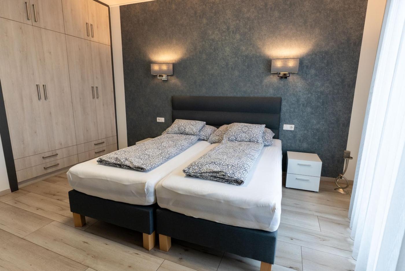 Two-Bedroom Apartment. Boasting a private entrance, this air-conditioned apartment includes 1 living room, 2 separate bedrooms and 1 bathroom with a walk-in shower and a bidet. In the kitchen, guests will find a stovetop, a refrigerator, a dishwasher and kitchenware. The spacious apartment offers a flat-screen TV with streaming services, a washing machine, soundproof walls, a coffee machine as well as city views. The unit has 4 beds.